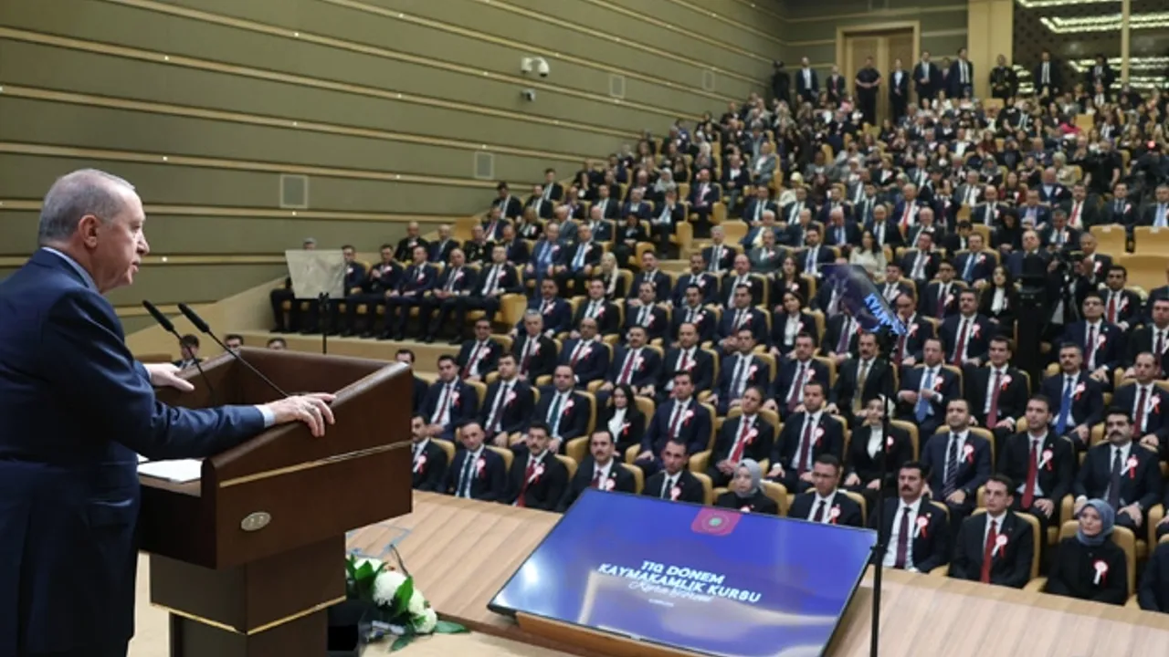 Cumhurbaşkanı Recep Tayyip Erdoğan, Cumhurbaşkanlığı Külliyesi'nde düzenlenen 110. Dönem Kaymakamlar Kurası Töreni'nde 16'sı kadın toplam 110 kaymakam adayına seslendi. Erdoğan, 'Kibirden uzak durun, halkın duasını alın' dedi.