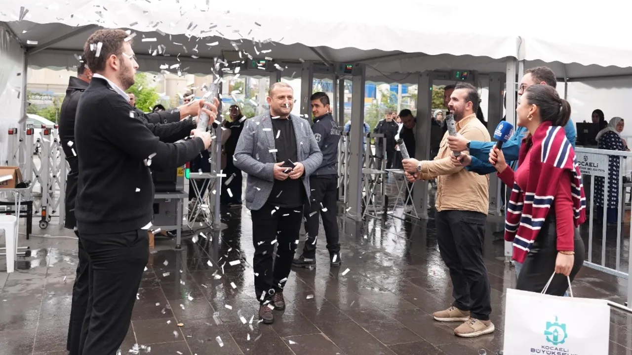 KOCAELİ (İGFA) - Kocaeli Büyükşehir Belediyesi'nin bu yıl 'Anadolu Mayası' temasıyla düzenlediği Uluslararası 15. Kocaeli Kitap Fuarı son gününde de yoğun bir ilgi görüyor. Yağışlı havanın da engel olmadığı kitap tutkusuyla dopdolu geçen Kocaeli Kitap Fuarı, 1 milyonuncu ziyaretçisini öğle saatlerinde ağırladı. Bu kapsamda fuarın 1 milyonuncu ziyaretçi Fuat Uçan oldu. Kocaeli Kongre Merkezi'nin üst yol gişelerinden fuar alanına giriş yapan Fuat Uçan, fuarın 1 milyonuncu ziyaretçisi olduğunu sürpriz bir şekilde öğrendi.